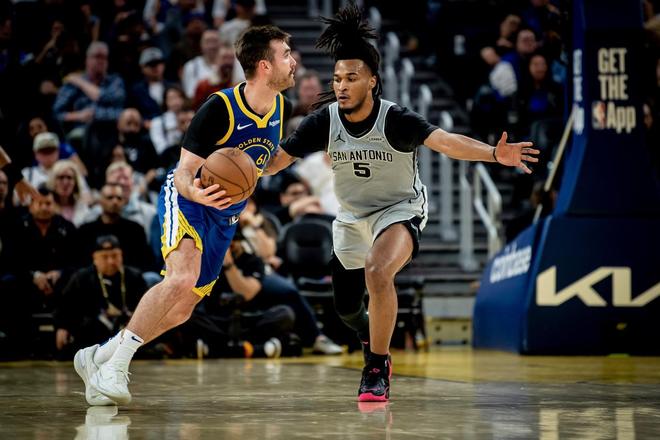 北京时间4月2日,NBA常规赛继续进行。马刺奔赴客场与勇士展开对决,两大超人气球队的较量,可谓是看点十足。此役是两队本赛季的第四次交手,前3次对决勇士取得了2胜1负的佳绩。圣安东尼奥众将士渴望在文班亚马的带领之下,在此战实现复仇。9连胜的马刺,目前状态正盛。米勒、科内特伤停,米西约翰逊的首发五虎是卡斯尔、福克斯、瓦塞尔、尚帕尼与文班亚马。吉米巴特勒、穆迪赛季报销,斯蒂芬库里、霍福德、波尔津吉斯、波斯特、佩顿、梅尔顿、桑托斯伤停,勇士人员轮换变得异常紧张。科尔调整了阵容,德拉蒙德格林携手内特威廉姆斯、理查德、克赖尔、波杰姆斯基出任首发。文班亚马与格林的内线对决,让本场比赛更加值得期待。