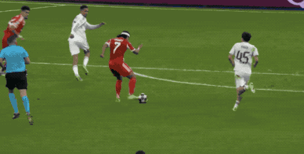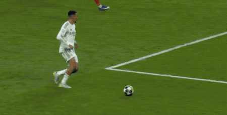 第41分钟,皇家马德里球员维尼修斯传球失误,格纳布里直塞,迪亚斯冷静推射得手,皇家马德里0-1拜仁慕尼黑。